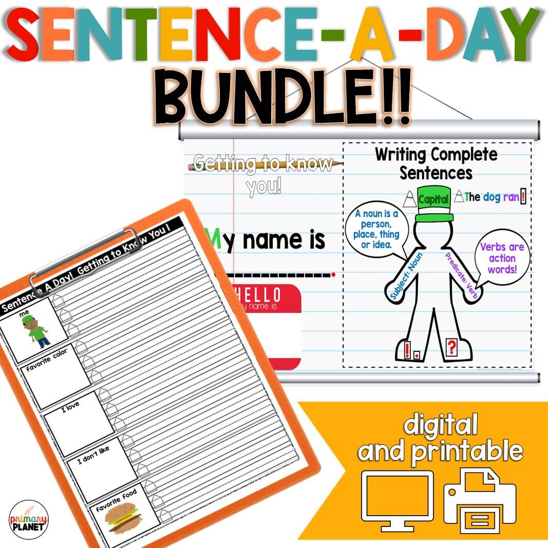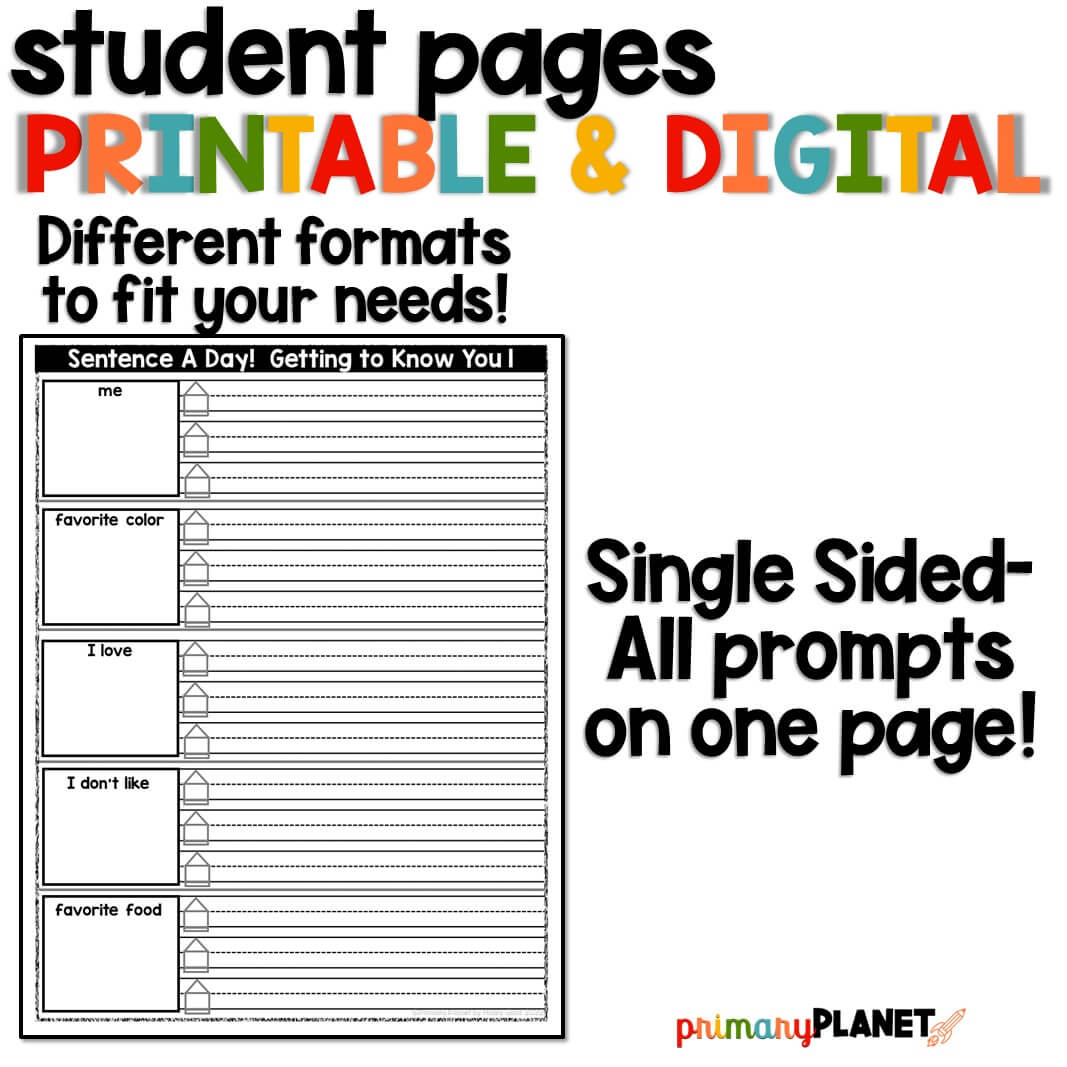 โขย Sentence Writing – Getting to Know You – Writing Sentence a Day – Back to School
