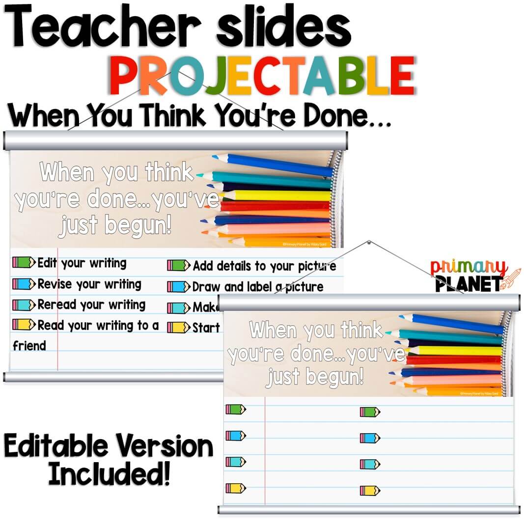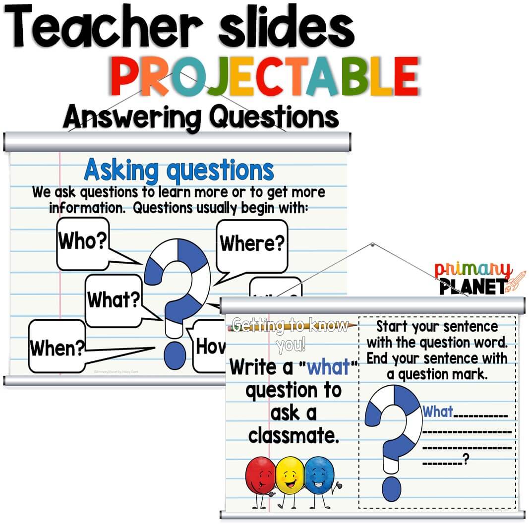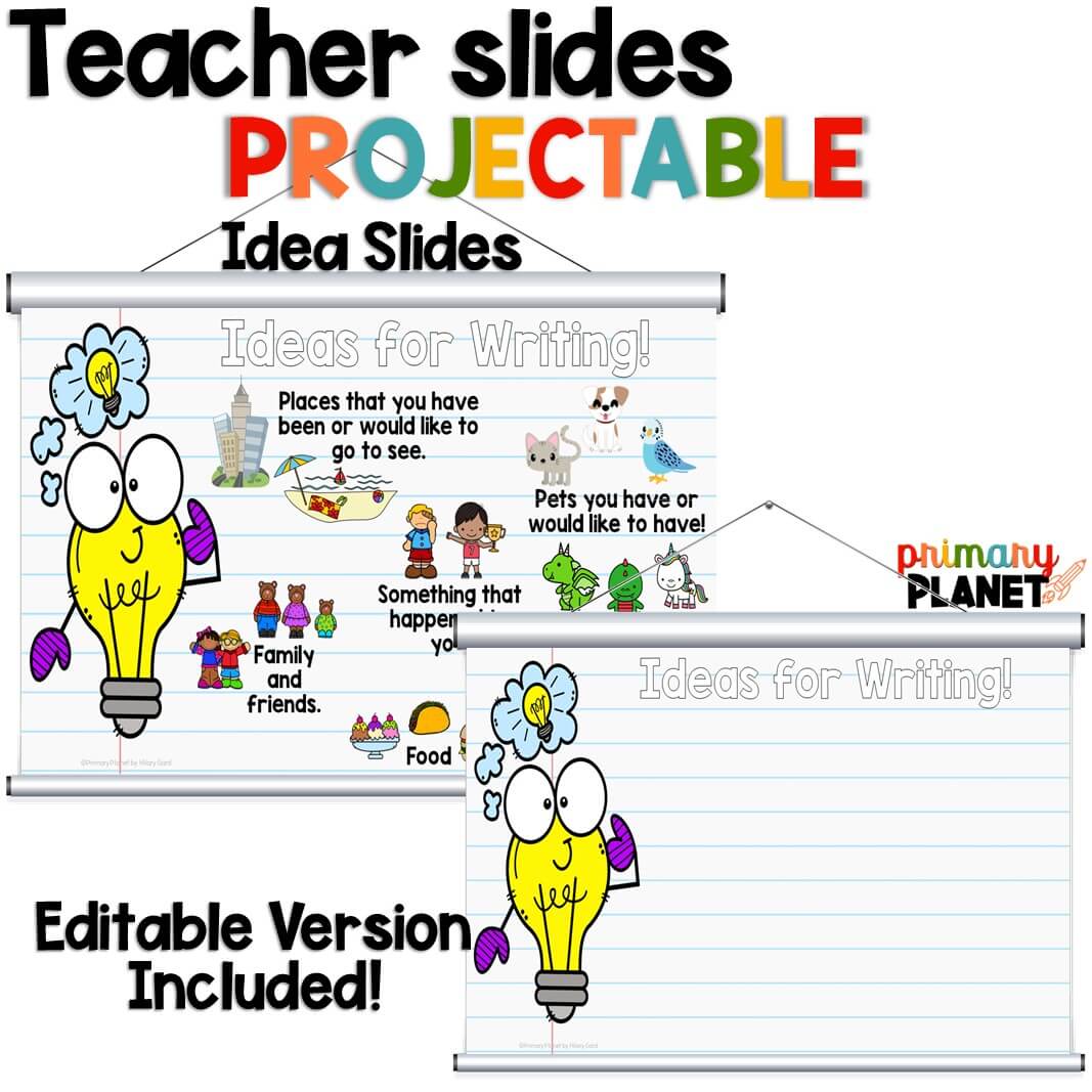 Sentence-a-Day Sentence Writing Lessons –ย Teaching Slides + Worksheets – Sentence Building will help you teach writing one sentence at a time in minutes a day. This product is meant to be used as projectable teaching slides for your specific lesson, with students doing their writing on the printable or digital pages in the product. Still, you could also use your paper or not use the projectable slides.